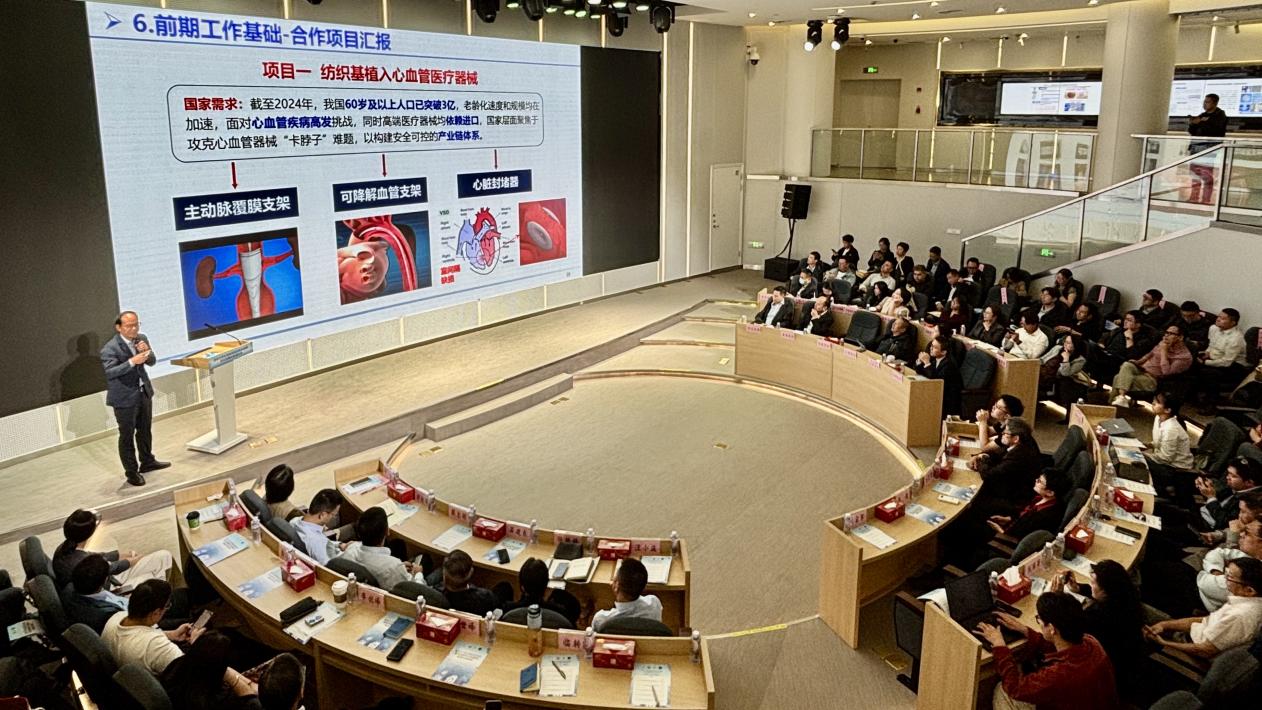 我校11位专家学者代表项目组进行路演,分别展示高端植入性纺织基医疗器械、治疗老年疾病mRNA核酸药物、阿尔兹海默症早筛快检试剂盒等前沿生物医用项目,涵盖医疗器械、生物药剂、创伤修复材料等多个领域,极具创新性与市场潜力。相关企业与投资人紧盯前沿生物医用技术展开交流,医院代表立足临床应用实际,提出迫切需求。多方互动互联,为产业科技创新精准导航,推动成果高效落地。