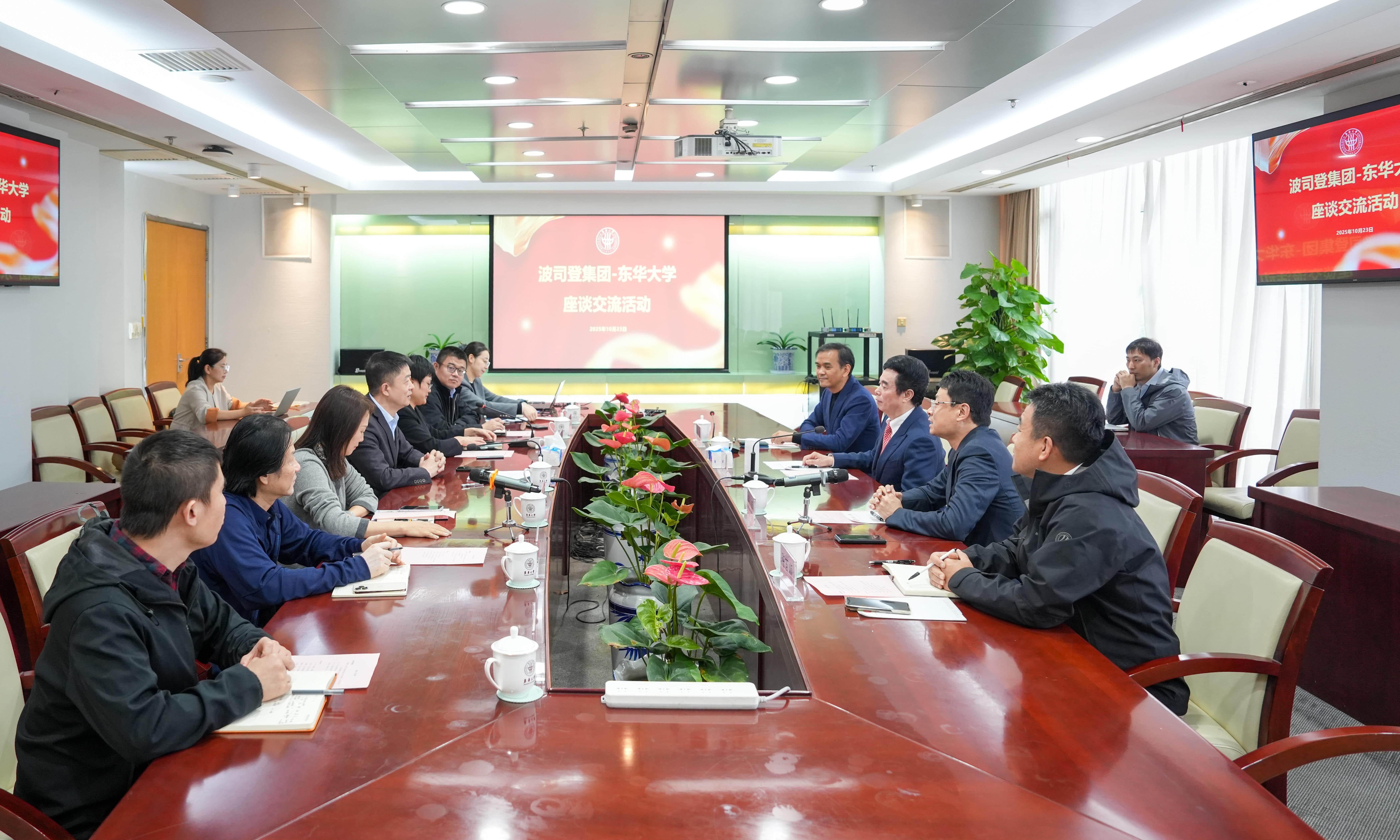 10月23日,全国工商联纺织服装业商会理事长、波司登创始人、集团董事局主席兼总裁高德康,波司登集团副总裁兼CHRO张磊一行来校调研交流,校长项延训、党委副书记李成龙在座谈会前会见高德康一行,就人才培养、科研合作等亲切交流。
