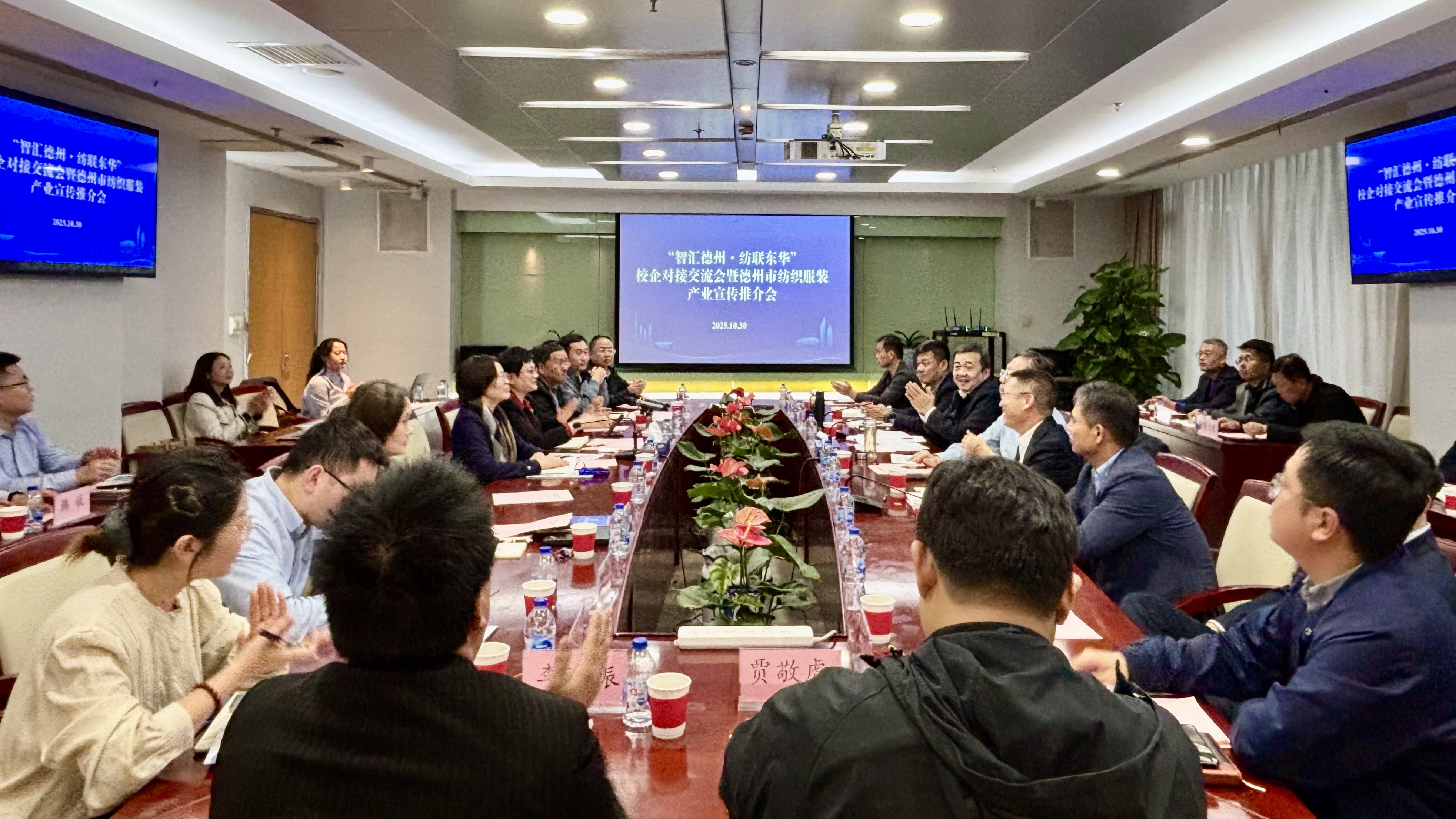 10月30日,山东省政府驻上海办事处党委委员、副主任石云峰,德州市副市长陈晓强带领德州企业一行来访我校,举办2025“智汇德州・纺联东华”产业发展交流座谈会暨德州市东华大学宣传推介会。副校长陆卫兵在座谈会前会见了德州市一行。中国科学院院士、先进纤维材料全国重点实验室主任朱美芳出席座谈会,科学技术研究院、学生就业服务中心、纺织学院、材料科学与工程学院、化学与化工学院、纺织科技创新中心、功能材料研究中心等单位负责人、教师代表、学生就业负责人参会交流。