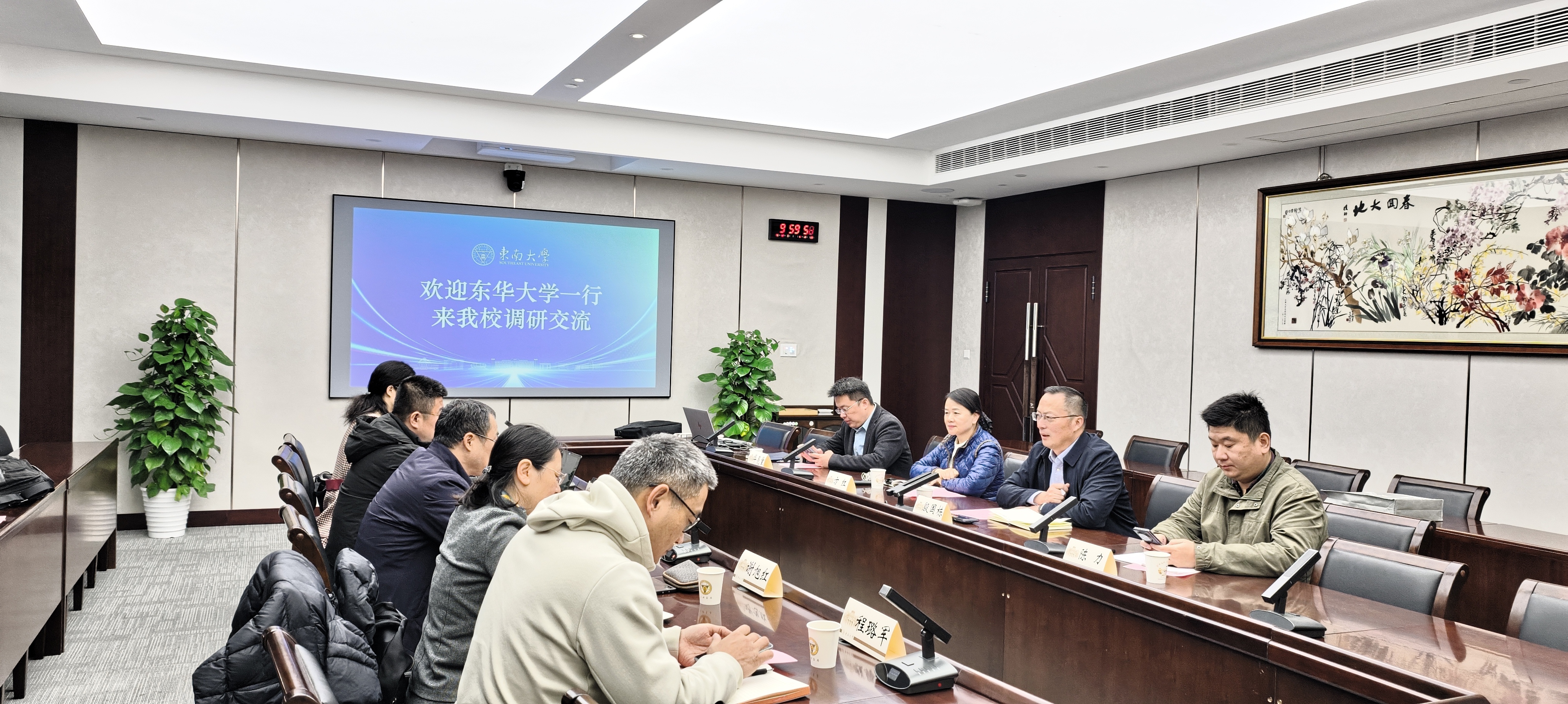 在交流环节,双方围绕“十五五”科研发展规划与科研指标管理、赋权改革与成果转化、校地校企合作与异地科研机构管理、国防科研考核评价与配套支持体系建设、国家级科技奖励培育与申报管理等重点工作进行了深入研讨。其中,东南大学在强化国家大学科技园建设中,重点围绕科研成果转化、阶段性成效评估与考核评价体系等关键环节系统推进,为我校当前开展的国家科技园重塑工作提供了有益借鉴与深刻启示。其次,东南大学南通海洋高等研究院作为校地合作的标志性项目,其建设经验具有重要的借鉴意义。另外,东南大学坚持以团队化、体系化人才培养为核心着力点,使科研团队能够潜心深耕,贯通从基础研究到应用研究的全链条。