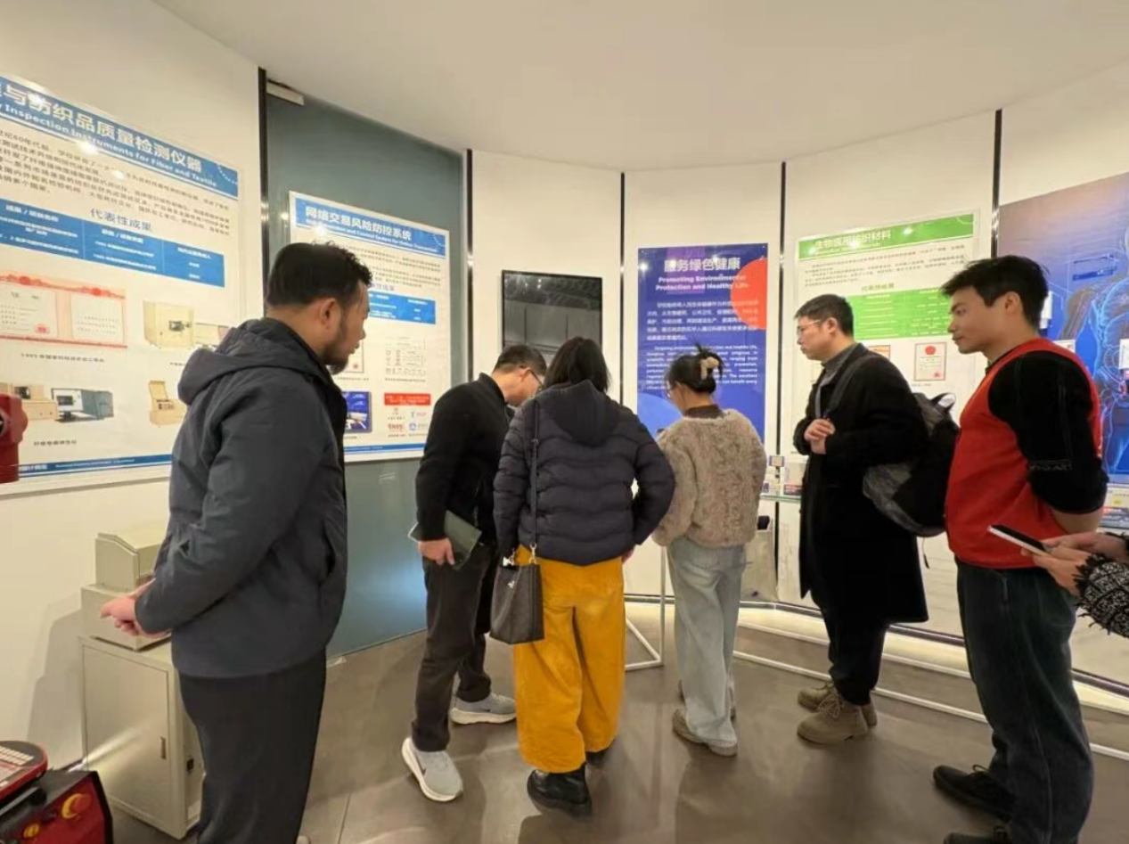 首先向代表团介绍了东华大学科技成果展览馆。展馆系统陈列了学校在纤维材料、纺织工程、生物医用材料、人工智能与智能制造等领域的标志性科研成果与产业化案例。企业代表们近距离接触了从基础研究到产品原型的一系列创新实物,对东华大学的科研积淀与转化潜力有了全景式了解,为后续精准匹配技术需求完成了“初步寻源”。